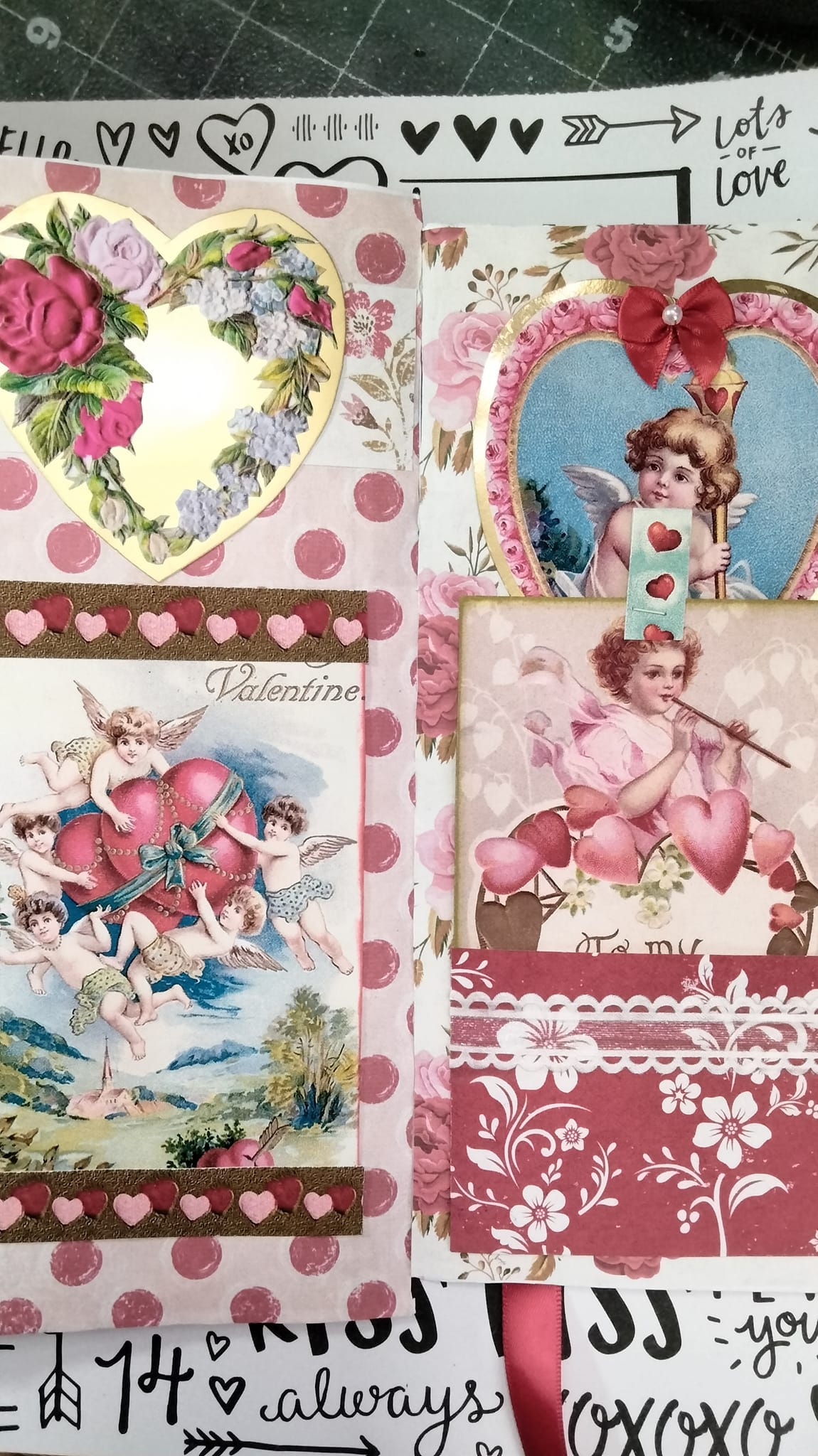 I saw these graphics on thegraphicsfairy.com and knew I just had to make another Valentine journal. This is from the Tokens of Love pack. I may have added some more of my papers and postcards to it also.